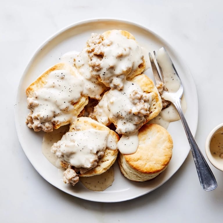 Last winter, my roommate stumbled into the kitchen with messy hair and a craving for comfort. We made these biscuits while listening to old records, and she accidentally doubled the black pepper. The gravy had a kick that made our eyes water, but we ate the entire batch standing at the counter, dipping warm biscuits straight into the pan.