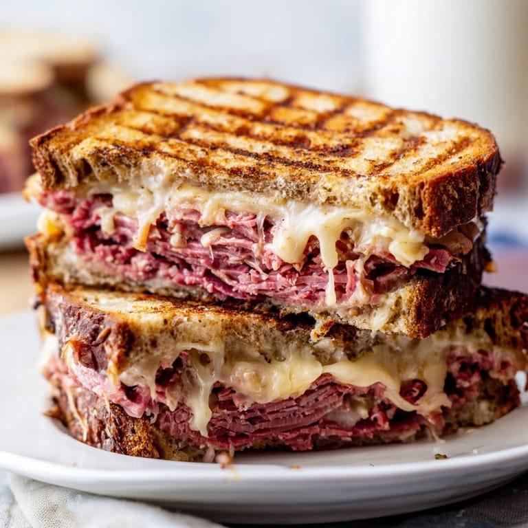 Pin The smell of butter melting in a hot skillet takes me straight back to this tiny deli counter where I first watched someone make a proper Reuben. The way they layered everything with such casual precision made it look like an art form. I went home and absolutely butchered my first attempt, but practice makes perfect. Now it's become my go-to when I want something that feels indulgent but still deeply comforting.