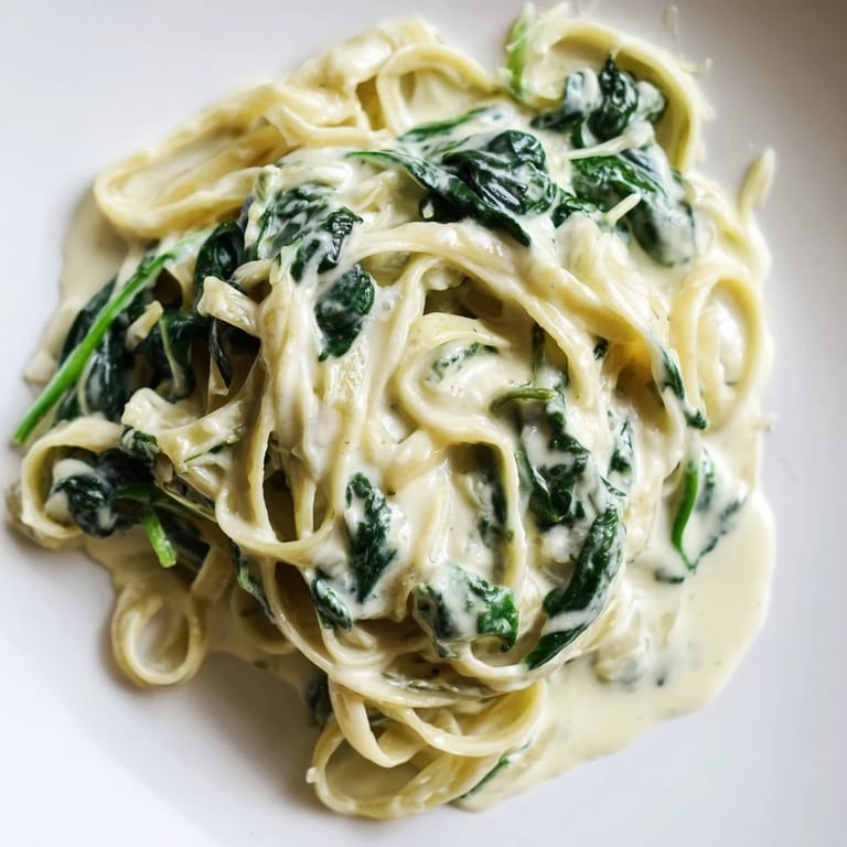 Pin I stumbled onto this dish one Thursday night when the fridge was nearly bare and my energy was even lower. All I had was a bag of spinach about to turn, some cream leftover from coffee experiments, and pasta. I tossed it all together with garlic and butter, and what came out of that pan tasted like I'd planned it for days. My roommate wandered into the kitchen, drawn by the smell, and declared it better than anything we'd ordered that month.