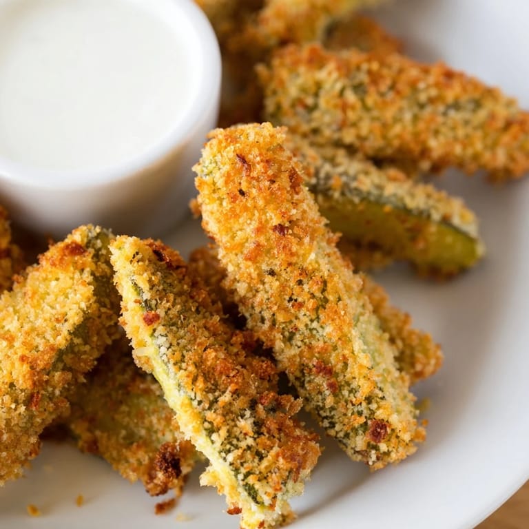 Panko breadcrumbs make a huge difference here because their large flakes create air pockets that turn incredibly crispy. Regular breadcrumbs still give you good results just maybe not that restaurant level crunch. The key is pressing the crumbs onto the pickles firmly so they really adhere.