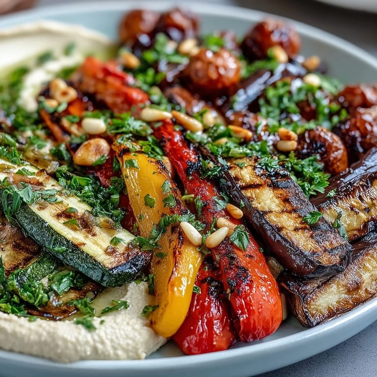 Pin The sizzle and smoky scent of grilling veggies always makes my kitchen feel like summer, regardless of the calendar. One afternoon, I decided to experiment with a pile of farmers' market finds, and the result was this Grilled Veggie Platter with homemade hummus. Every color seemed brighter as I brushed the vegetables with olive oil and watched them caramelize on the grill. I love how the simple act of grilling brings out unexpected sweetness in even the humble onion. Sharing this at a picnic felt less about eating and more about celebrating sunshine on a plate.