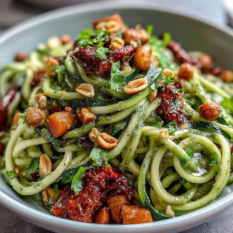 Pin My spiralizer sat in a cabinet for months before I finally pulled it out on a Tuesday night when I had nothing but zucchini, good intentions, and zero energy for actual cooking. The moment those green ribbons hit the hot pan and started to soften, something clicked—this was going to be lighter than pasta but still deeply satisfying, especially when I drizzled that peanut sauce over everything. Now it's the dish I make when I want to feel good about dinner without any fuss or guilt.