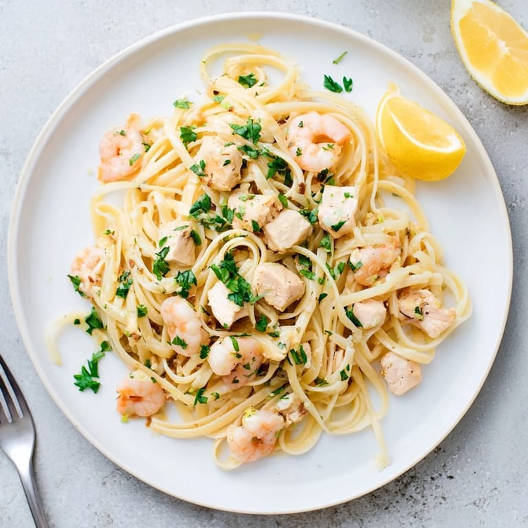 I once doubled this recipe for a dinner party and watched my usually picky eater friend go back for thirds. Something about the combination of tender chicken and succulent shrimp in that bright, buttery sauce just makes people happy. My kitchen smelled like an Italian grandmother's house, and honestly, that might be half the magic right there.