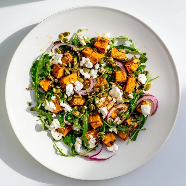 Pin There's something about the way this salad looks on the table that makes people lean in a little closer. The burnt orange of the sweet potatoes against the dark green arugula and white crumbles of feta feels like autumn without trying too hard. I've served it at casual dinners and slightly fancier lunches, and it always feels right.