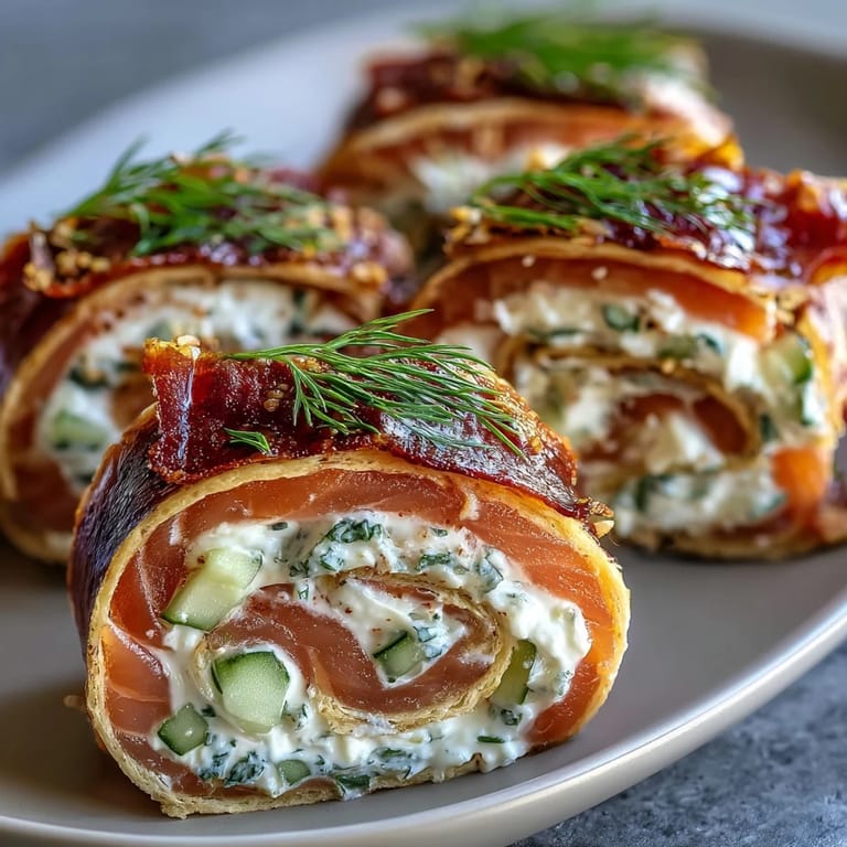 Pin The first time I assembled Smoked Salmon & Cucumber Cream Cheese Pinwheels, I was drawn in by the aroma of fresh dill mingling with creamy cheese—it immediately made the kitchen feel lively. Slicing through the rolled tortillas brought a satisfying hush, the sound almost marking the pause before company arrived. Making these for brunch, I realized I could prep them quickly and still have an elegant appetizer ready for guests. Some pinwheels leaned a little, but nobody noticed in the moment—everyone was too eager to grab them from the platter. It's a recipe that's fuss-free yet always feels polished, and I've enjoyed the anticipation each time the rolls come out chilled and perfect.